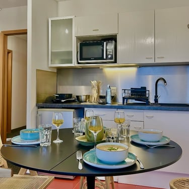 Jusqu'à 4 voyageurs, 1 chambre, 1 lit double et un canapé-lit, 1 salle de bain